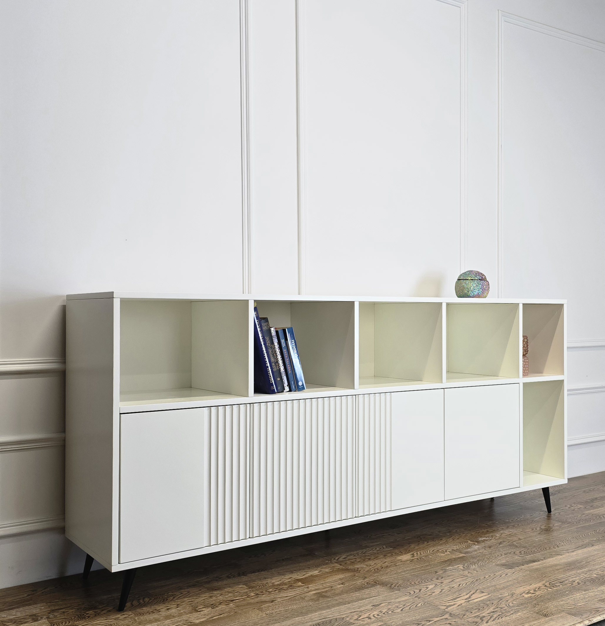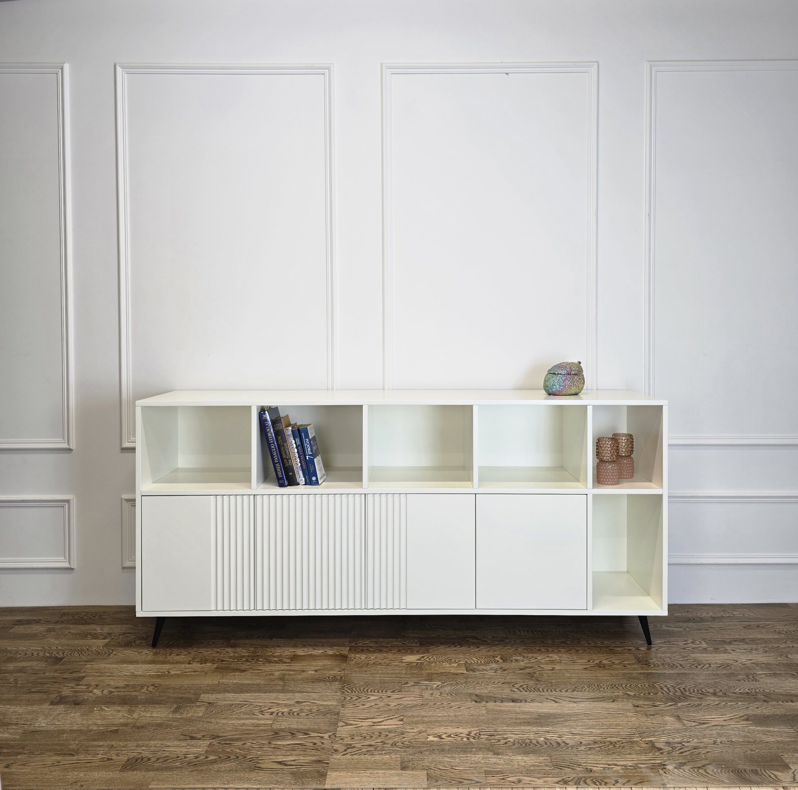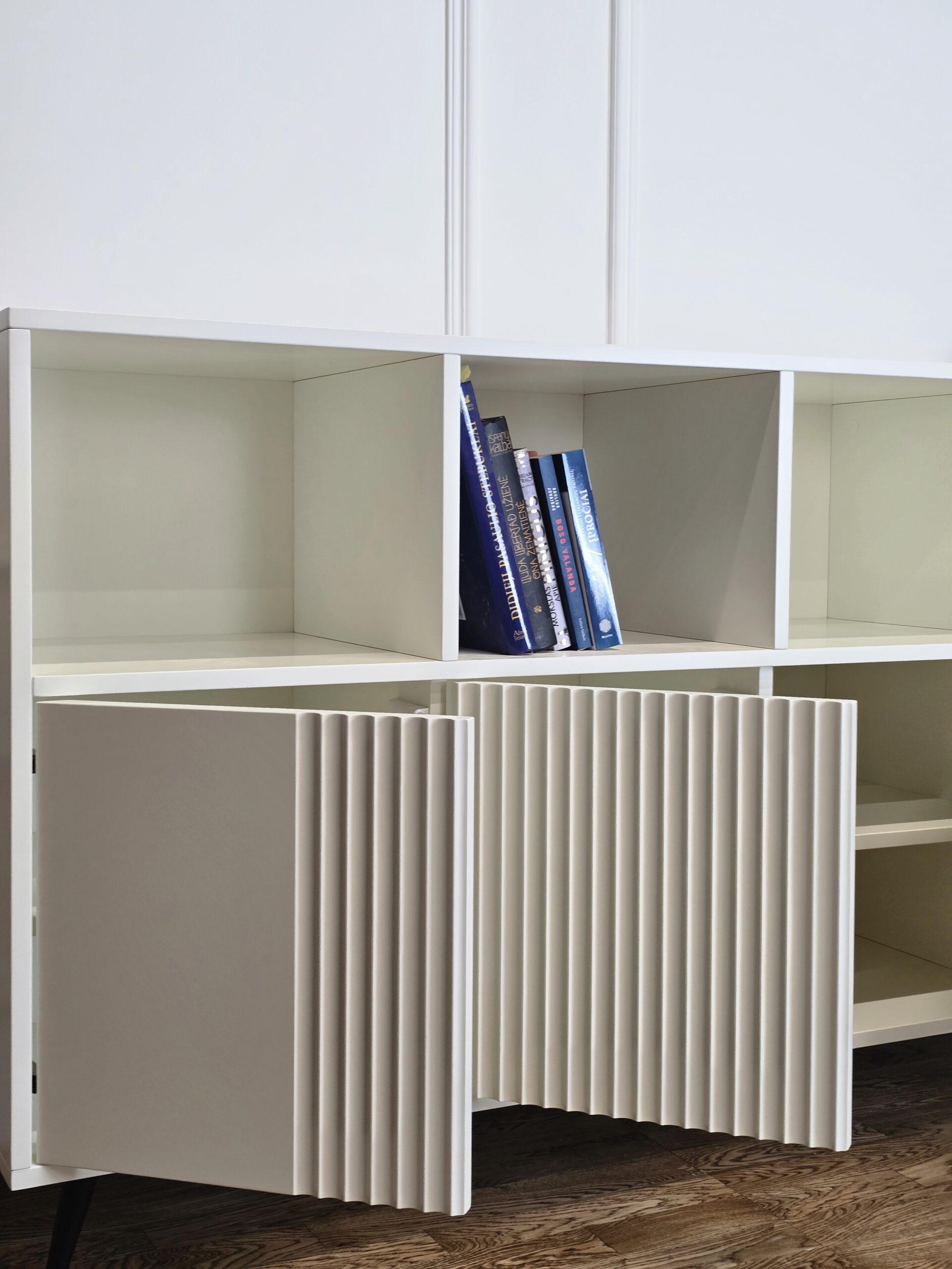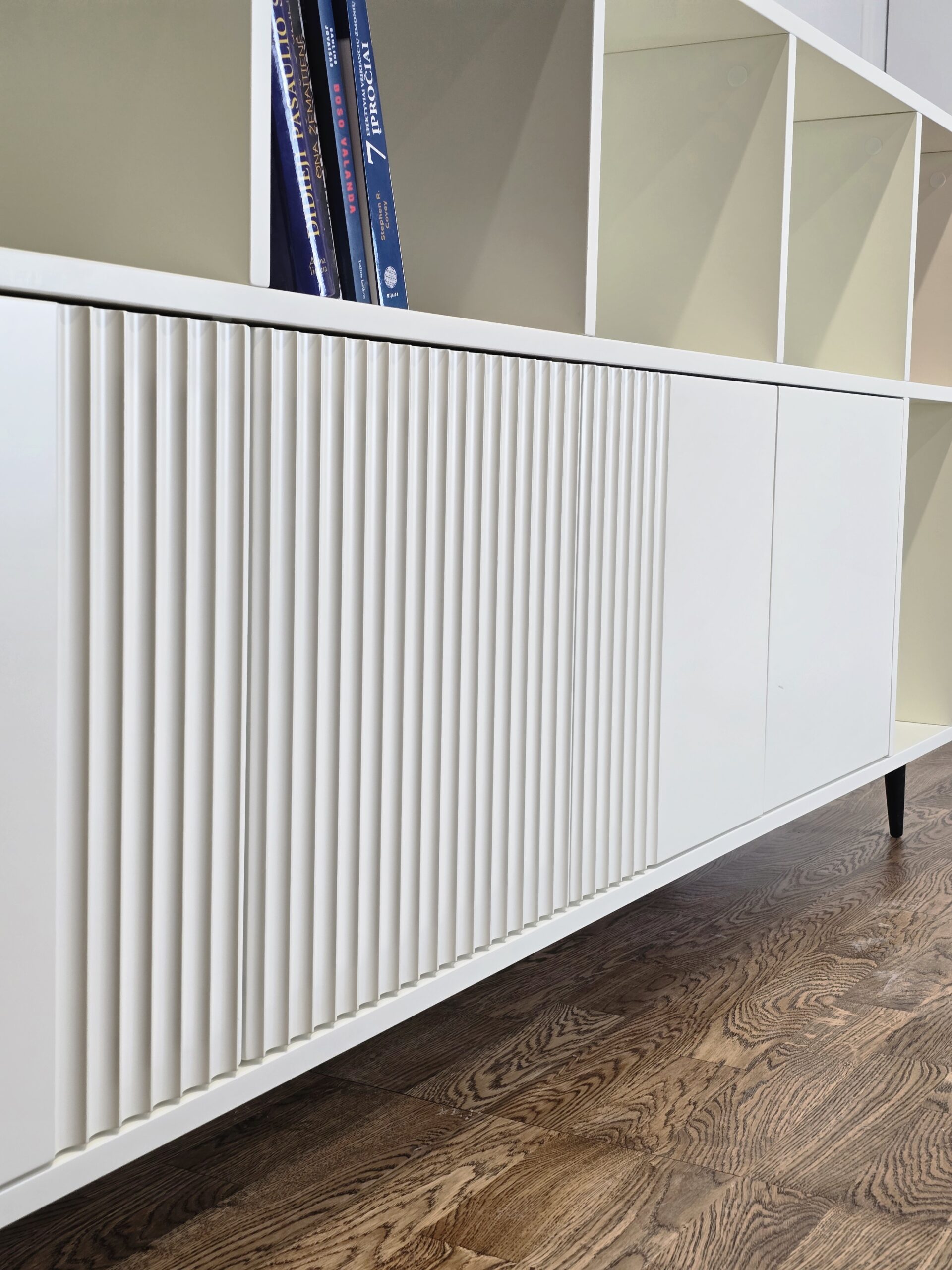 Komoda „Knygynas“ – tai baldas, kuriame dera modernumas, funkcionalumas ir vizualinis lengvumas. Puikus pasirinkimas tiek knygoms, tiek mėgstamiems aksesuarams eksponuoti.