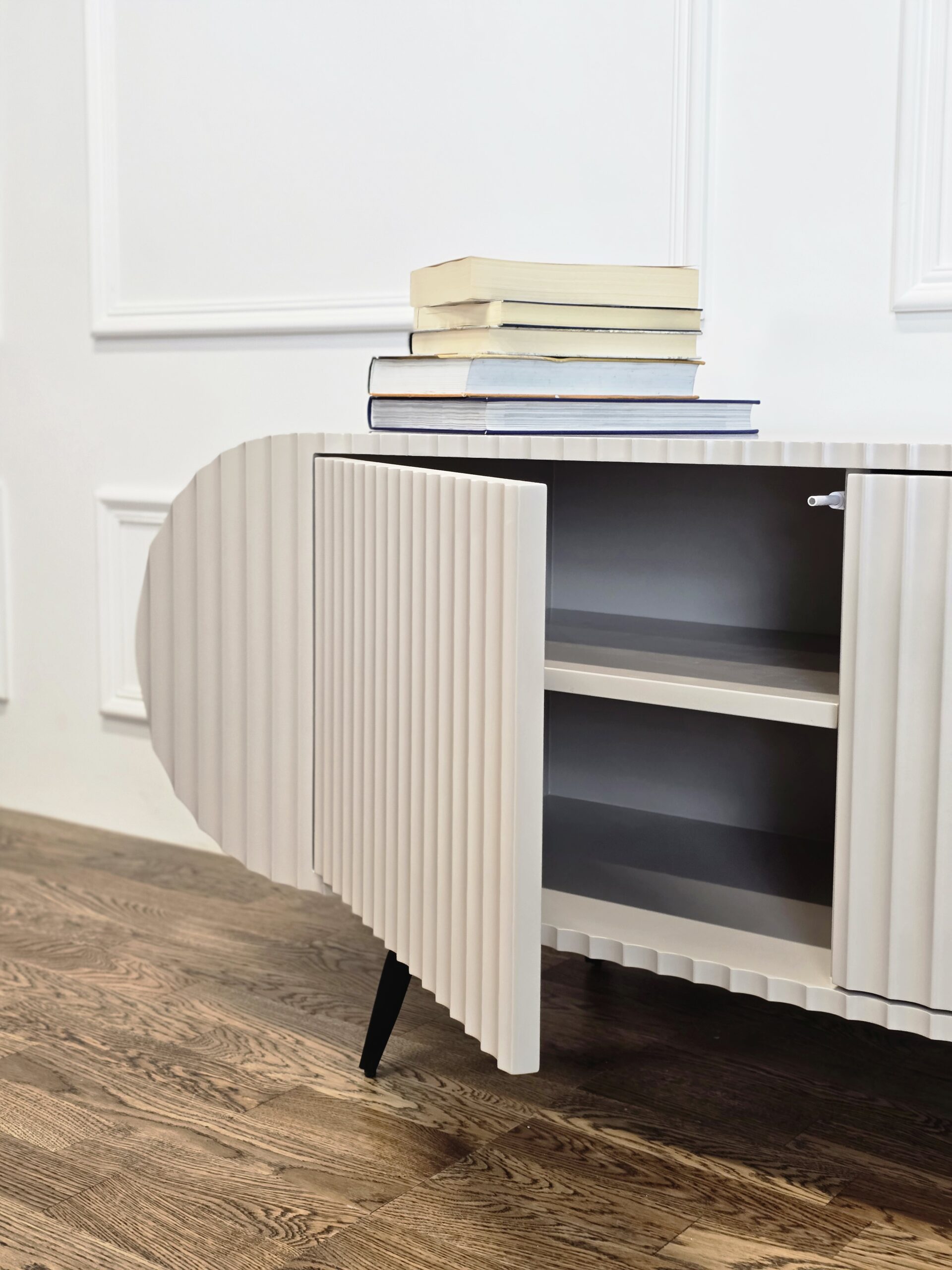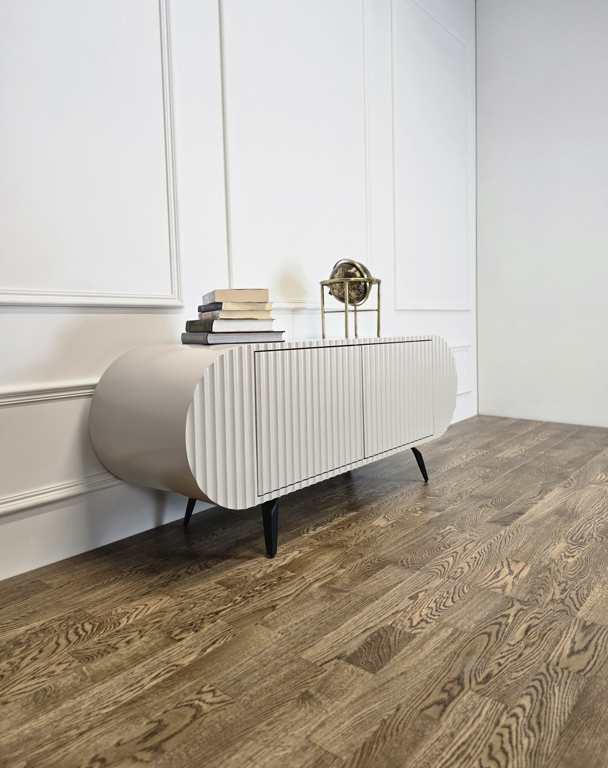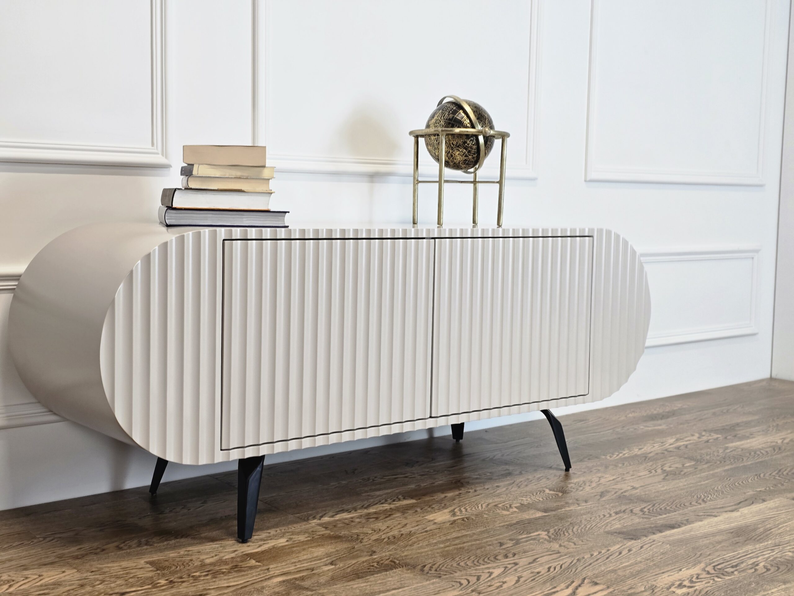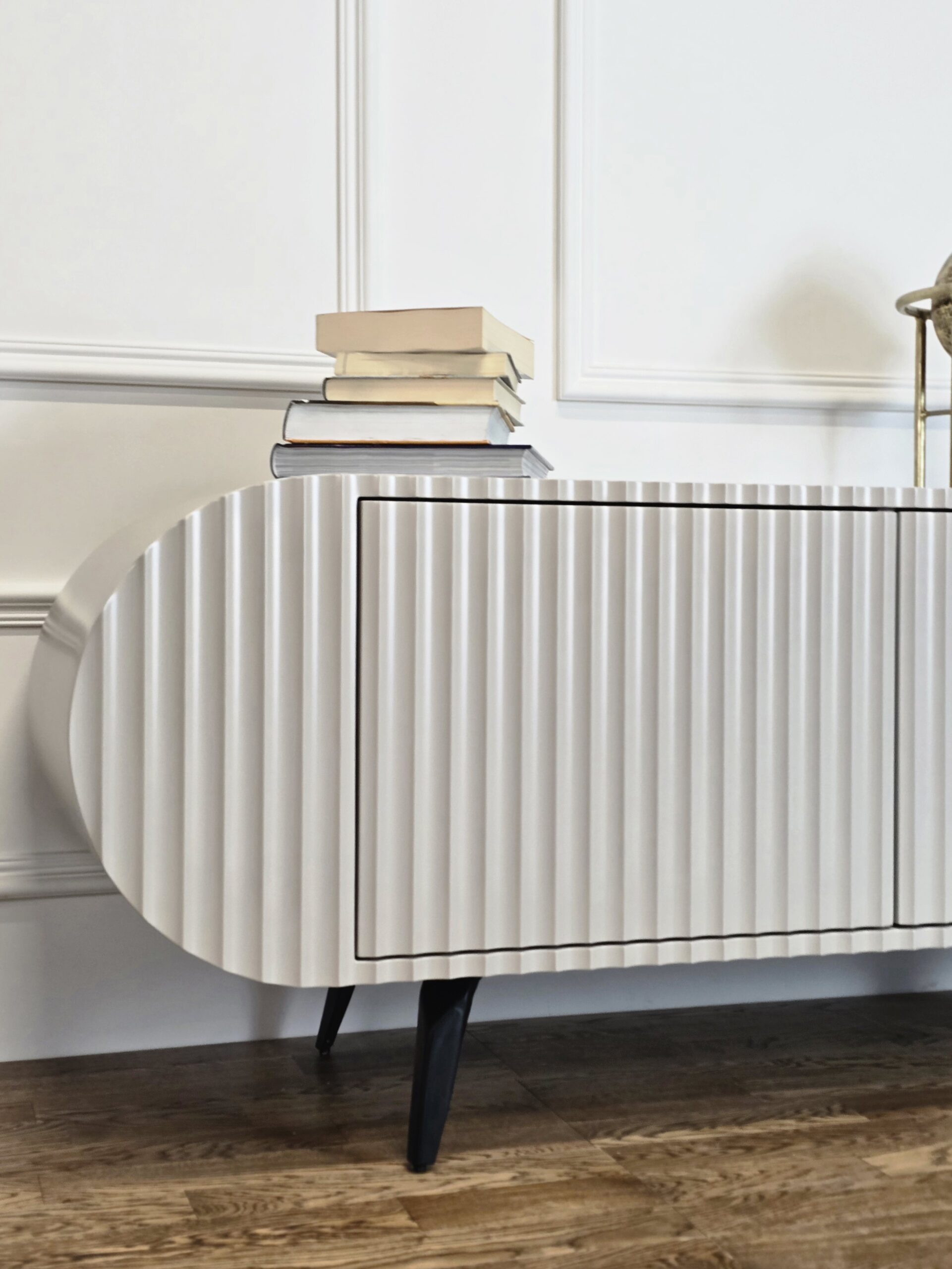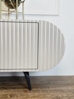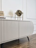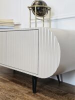 Komoda „Saldainis“ – tai ne tik baldas, bet ir išskirtinis interjero akcentas. Švelnių formų, lenktų linijų dizainas bei vertikalus dekoras kuria žaismingą, bet kartu ir elegantišką įvaizdį. Puikiai tinka tiems, kurie vertina nestandartinius sprendimus ir nori savo namams suteikti charakterio.