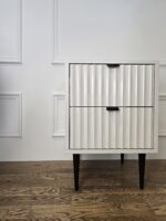 Lovos staliukas „Kubikas“ – tai rafinuotas baldas su charakteringu vertikaliu raštu ir kontrastingomis kojelėmis. Šis staliukas puikiai dera šiuolaikiniame interjere, suteikdamas jam struktūros, aiškumo ir subtilaus ritmo.