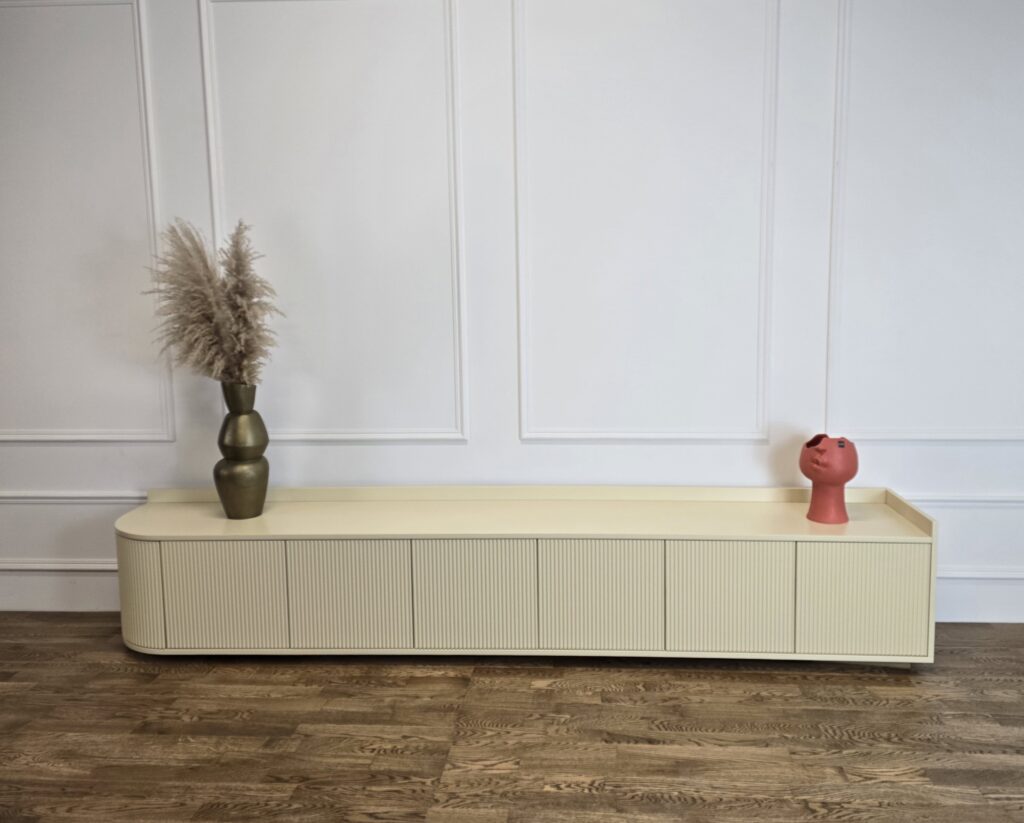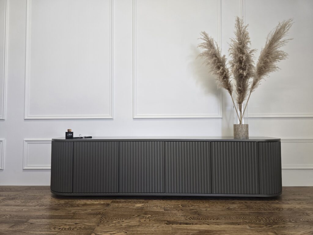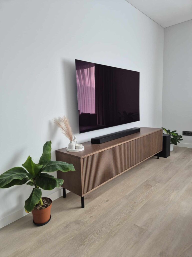 Šis TV baldas – tai rafinuotas ir kartu praktiškas interjero sprendimas, kuris lengvai įsilies į tiek modernią, tiek natūralaus stiliaus erdvę.