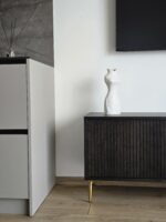 Šis baldas – idealus pasirinkimas moderniam interjerui, kuriame norisi sujungti šilumą, eleganciją ir technologinį komfortą.